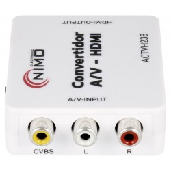 3xRCA Composite to HDMI Digital A/V Converter Device Note Includes USB to Micro USB cable, plastic case Resolution 720p - 1080P size 66.0x55.0x20.0mm Power supply 5V Micro USB White color