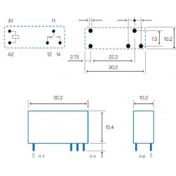 Size: 30,2x15,4x10,2mmCircuits switched: 1 Cto./3 PinsContacts: 10Amp./250VcaStep: 3,2mmVol.Bobina: 12VccConnection: Cto. Printed