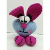 Muñeco hecho a mano, amigurumi con forma de corazón, azul claro y fucsia, 22 cm.